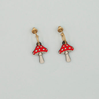 These earrings feature Materia Rica’s whimsical take on the classic toadstool — a symbol of mystery, imagination, and magical transformation. Laser-cut and hand-painted, they bring a playful pop of nature-inspired surrealism to any look.