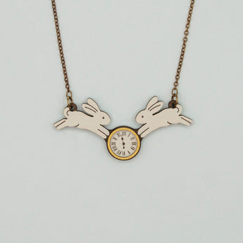Tick-tock goes Wonderland time — this whimsical necklace features two running rabbits and a pocket watch, racing through the story in their magical rush. Engraved and hand-painted, it’s a tribute to time, curiosity, and the surreal energy of Alice’s world.
